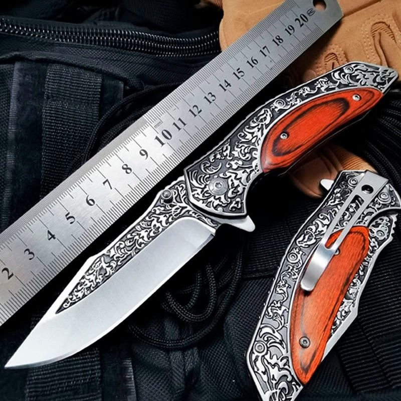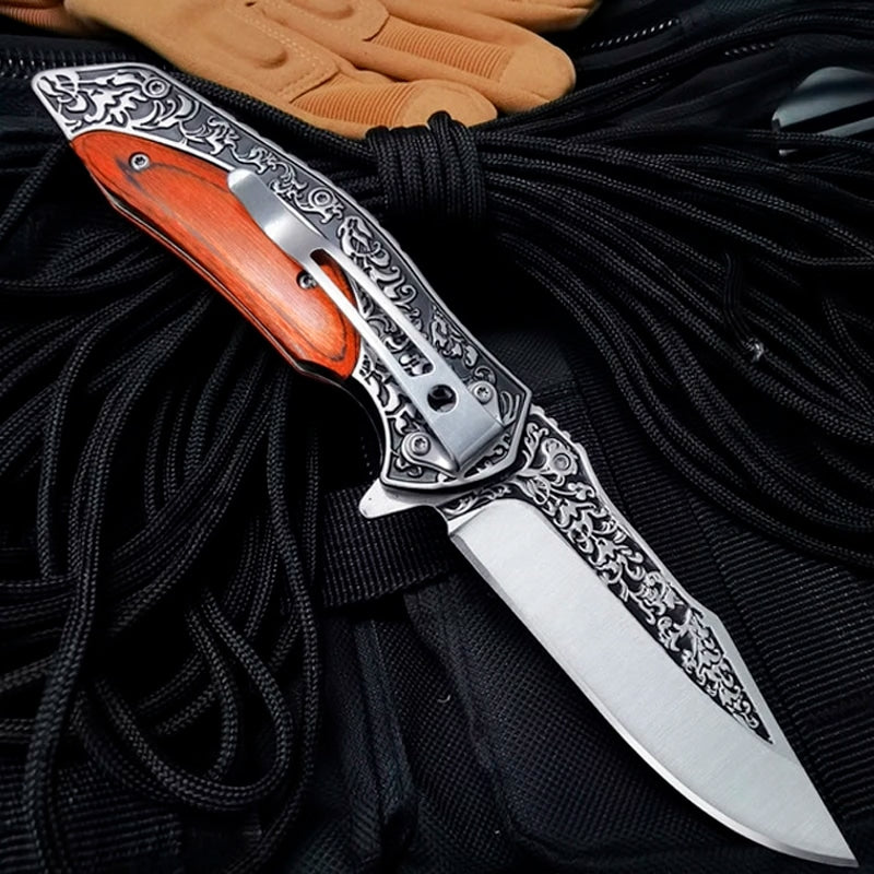 Briceag cu husa nylon, lama pliabila, otel japonez, maner Delux Pakka, Maro