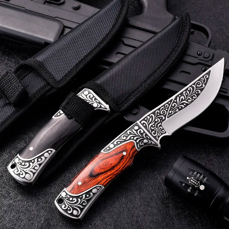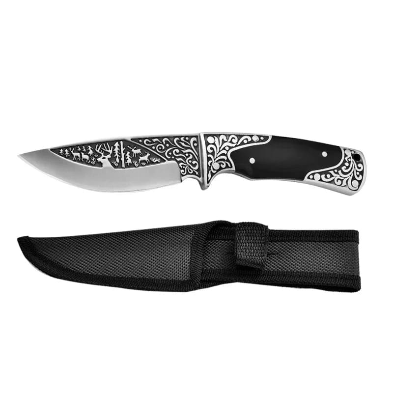 Briceag cu husa nylon, lama fixa, otel japonez, maner Delux Pakka, Negru