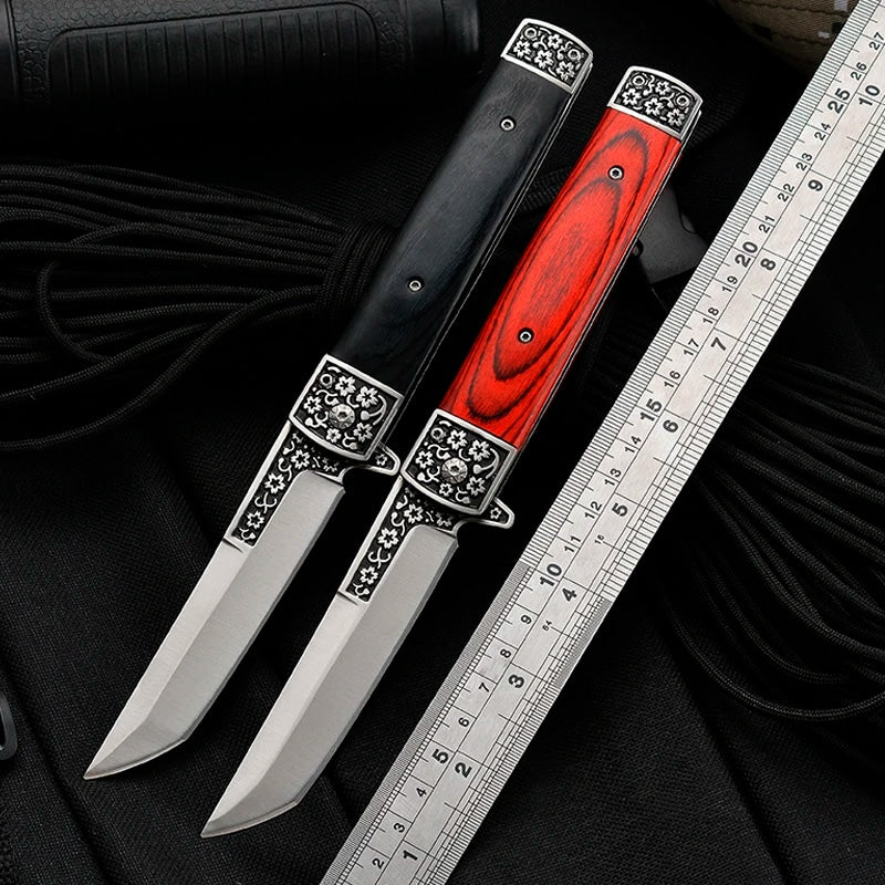 Briceag, lama pliabila, otel japonez, maner Delux Pakka lemn Rosu