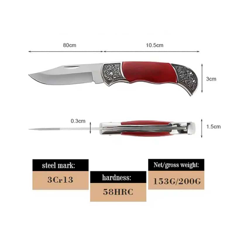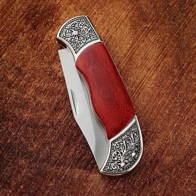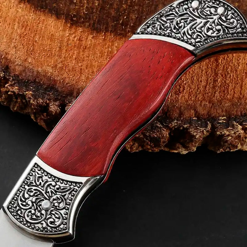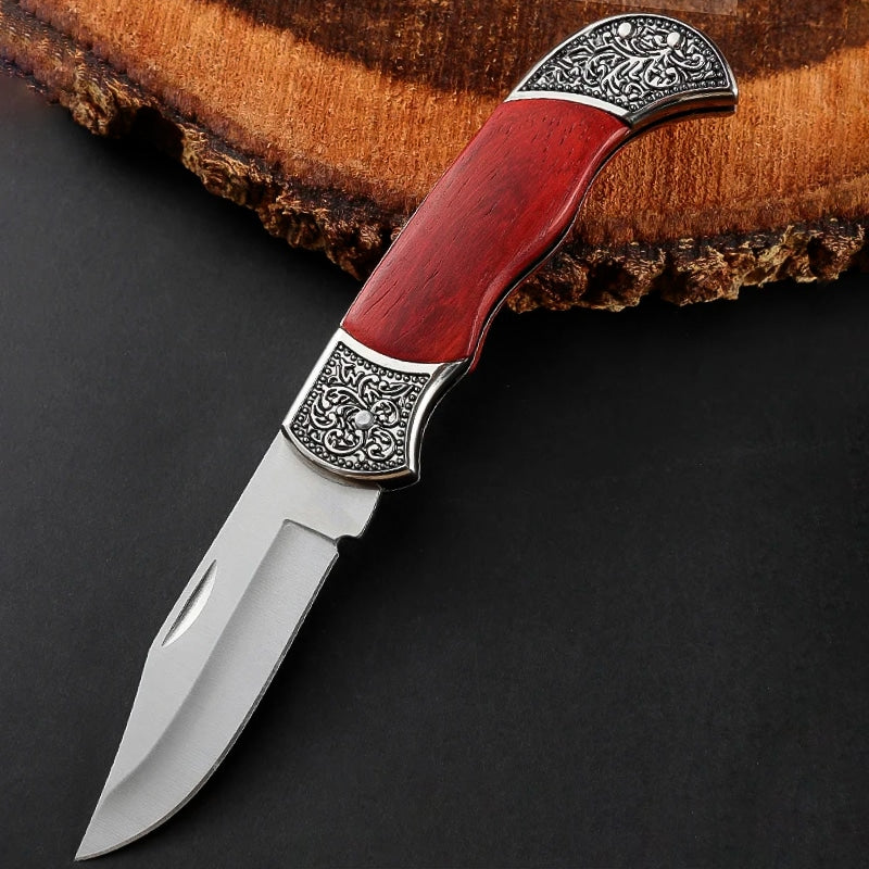 Briceag, lama pliabila, otel japonez, maner lemn, Rose