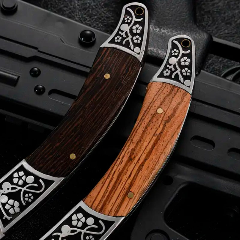 Briceag, lama pliabila, otel japonez, maner lemn zabra, Maro