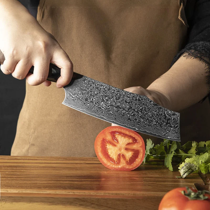 Cuțit Nakiri gama Premium – Cuțit Japonez pentru Legume, Oțel Damasc VG-10, Mâner Ergonomic din Arțar și Rășină