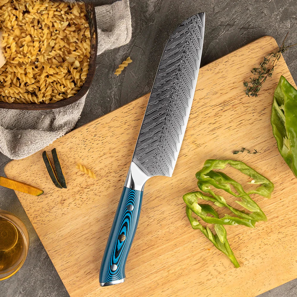 Set 4 cuțite Premium 73-Straturi Oțel Damasc & Mâner Albastru