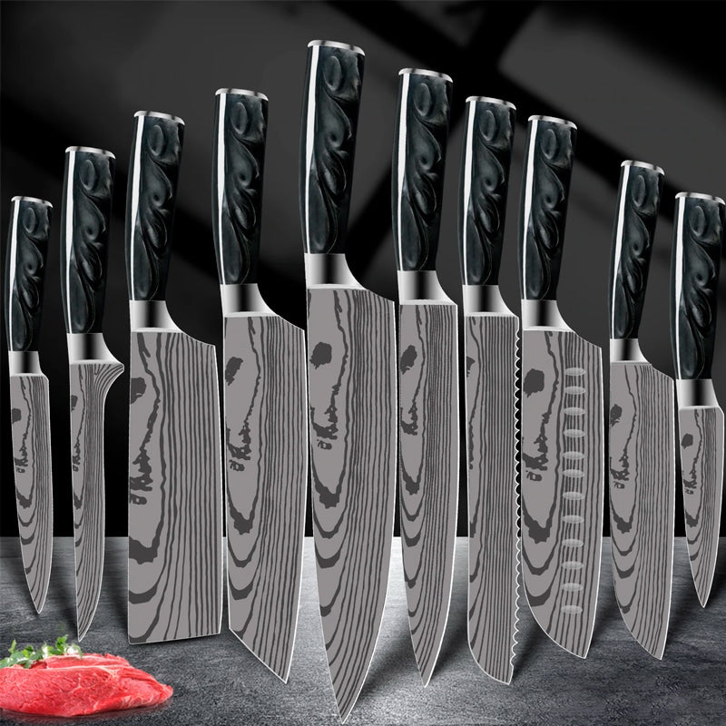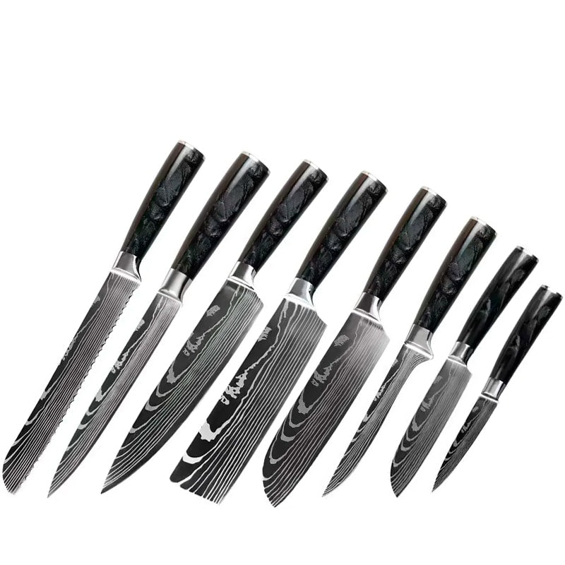 Set 8 cutite profesionale, otel Japonez HRC 60, calire laser, 8 cutite, maner G10