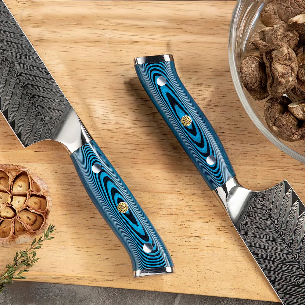 Set de Cuțite Damasc 73 Straturi – Design Unic H243 cu Mânere Albastre, Performanță și Eleganță în Bucătărie